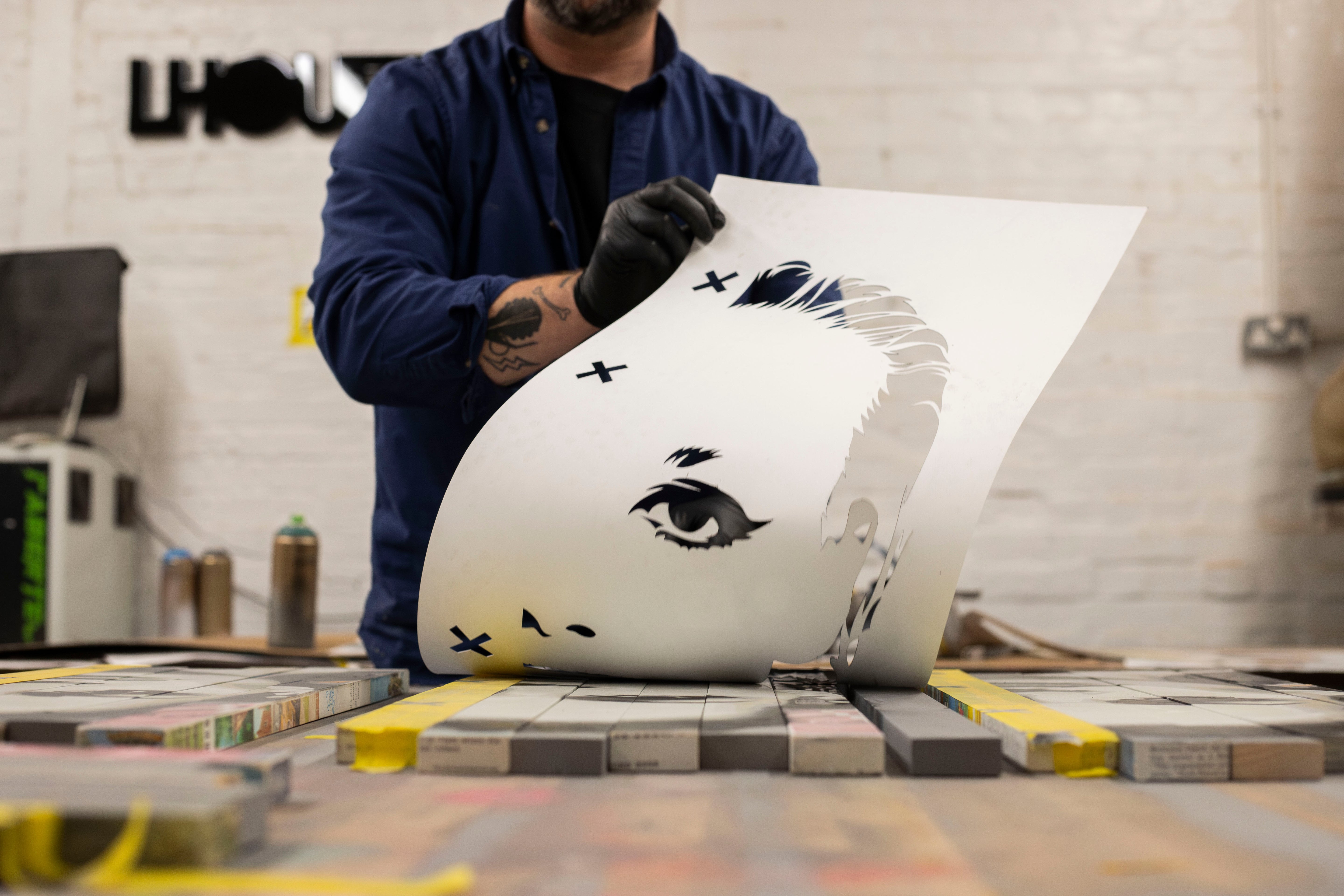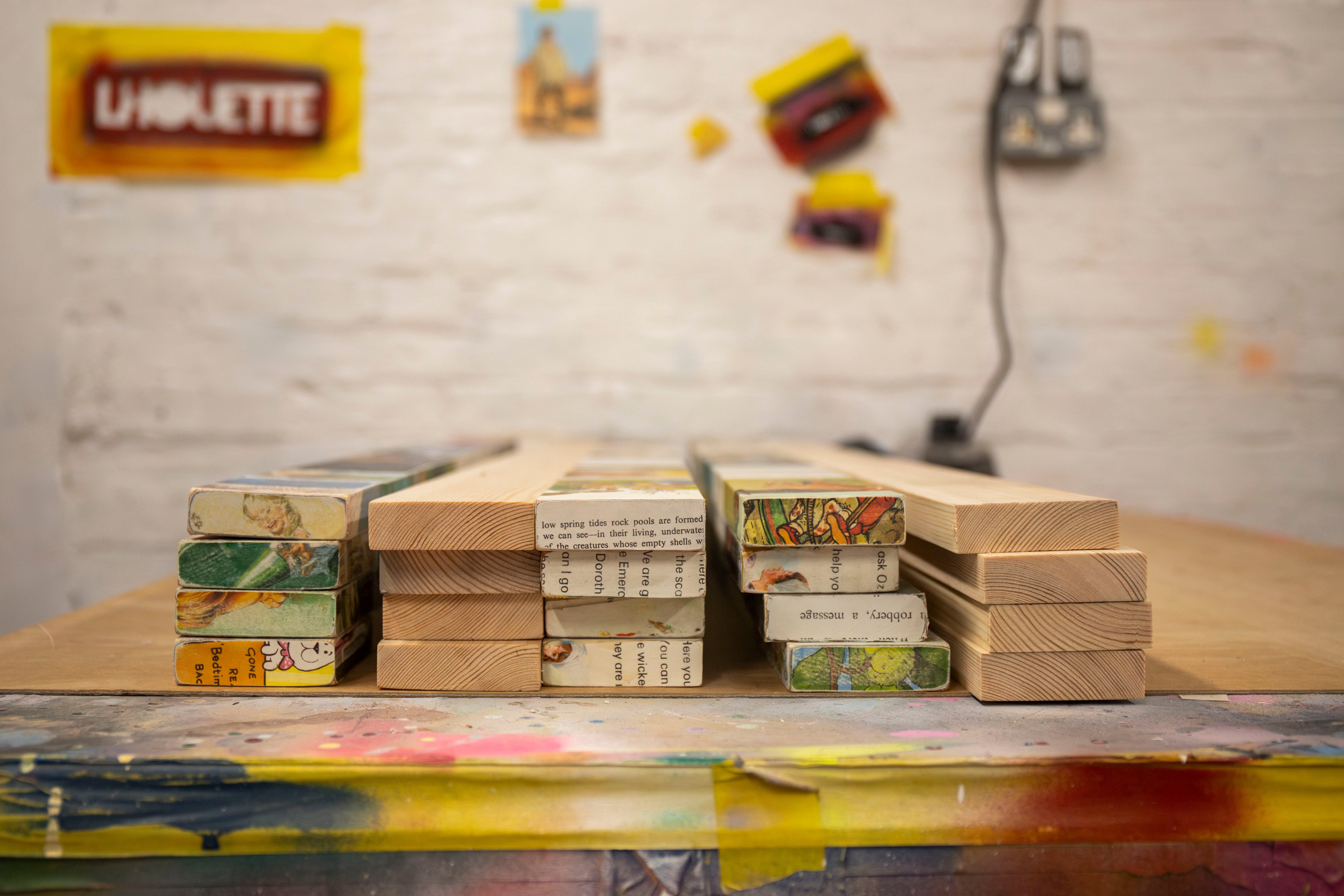 Lhouette returns with Misfits, a series celebrating the beauty of being out of place. Combining urban pop grit with hand-finished craftsmanship, each piece blends reclaimed timber, vintage book pages, stencilled portraiture, and collage to create rich, tactile surfaces.